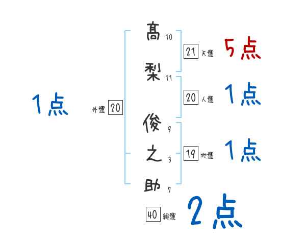 髙梨俊之助さんの画数の鑑定結果