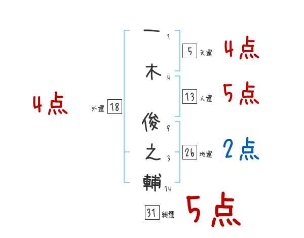 外運![]() | 一木俊之輔さんの外運は18画の4つ星!情熱的で剛気。忍耐力があり信頼される。 生活面を象徴する運勢です。外部から受ける影響力を表し、結婚運、家庭運や職場、環境への順応性を表します。 |