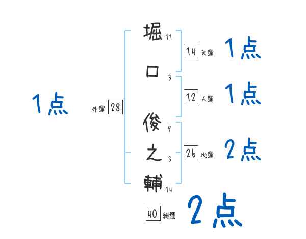 外運![]() | 堀口俊之輔さんの外運は28画の1つ星!家庭環境に注意。スポーツで活躍できる能力があるかも。 生活面を象徴する運勢です。外部から受ける影響力を表し、結婚運、家庭運や職場、環境への順応性を表します。 |