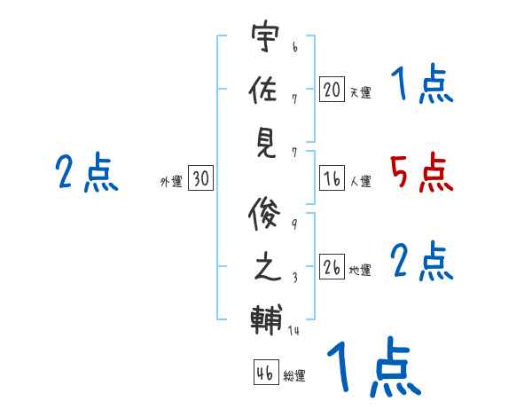 宇佐見俊之輔さんの画数の鑑定結果