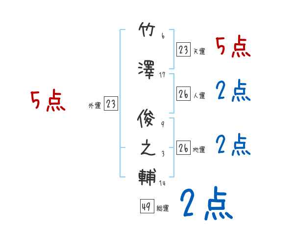 竹澤俊之輔さんの画数の鑑定結果