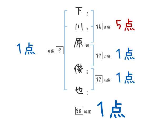 下川原俊也さんの画数の鑑定結果