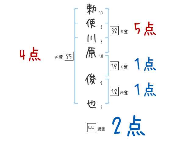 勅使川原俊也さんの画数の鑑定結果