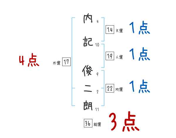 内記俊二朗さんの画数の鑑定結果