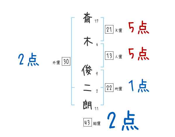 斎木俊二朗さんの画数の鑑定結果