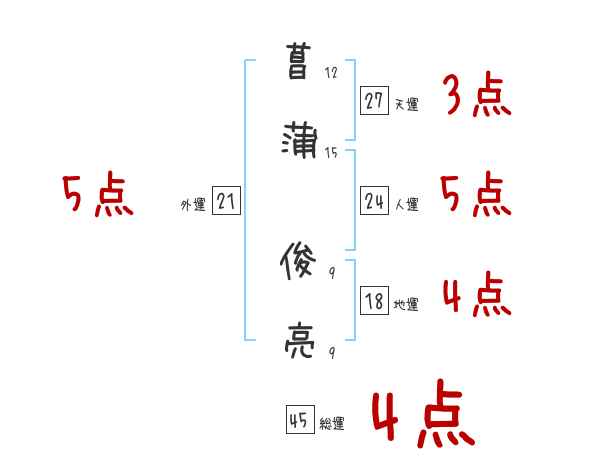菖蒲俊亮さんの画数の鑑定結果