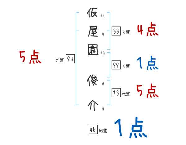 仮屋園俊介さんの画数の鑑定結果