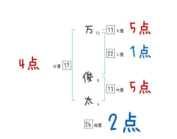 万俊太さんの画数の鑑定結果