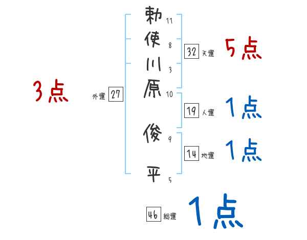 勅使川原俊平さんの画数の鑑定結果