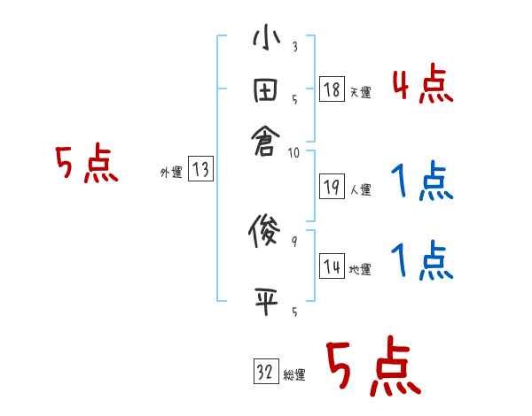 小田倉俊平さんの画数の鑑定結果
