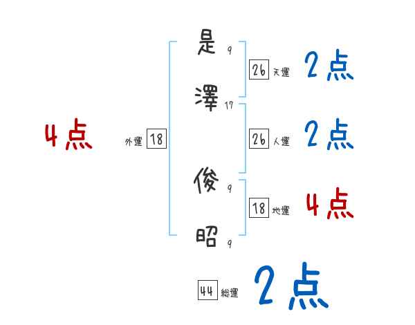 是澤俊昭さんの画数の鑑定結果