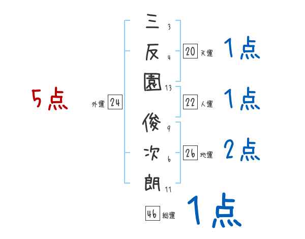 三反園俊次朗さんの画数の鑑定結果
