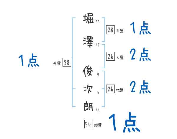 堀澤俊次朗さんの画数の鑑定結果