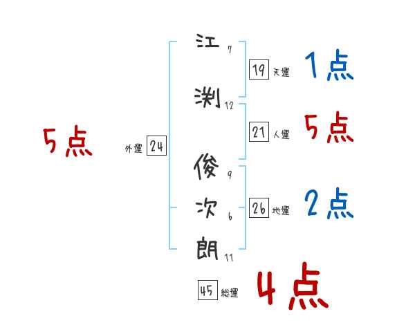 人運![]() | 江渕俊次朗さんの人運は21画の5つ星!統率力がある。独立し成功する。名誉を手に入れる。 性格や才能などを表す2番目に重要な運勢です。人間関係や協調性、社会的な成功に影響します。主に20歳から50歳ぐらいまでの中年期の運勢を表します。 |