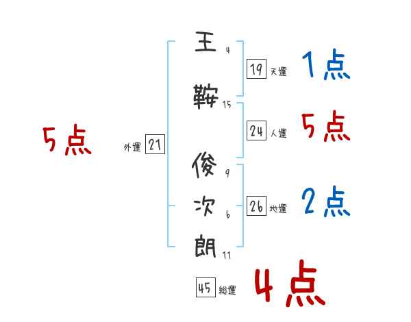 王鞍俊次朗さんの画数の鑑定結果