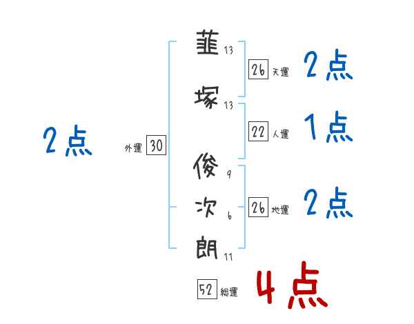 韮塚俊次朗さんの画数の鑑定結果