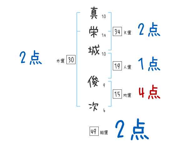 真栄城俊次さんの画数の鑑定結果