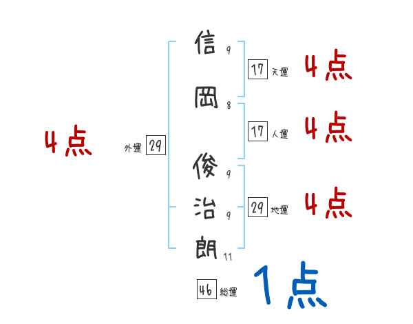信岡俊治朗さんの画数の鑑定結果