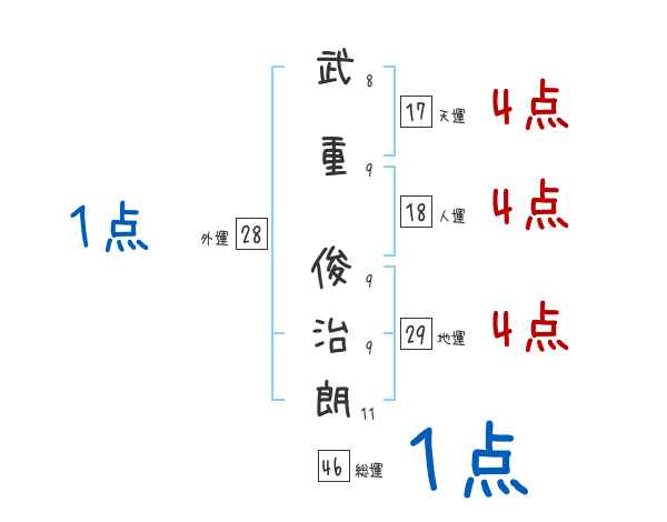武重俊治朗さんの画数の鑑定結果