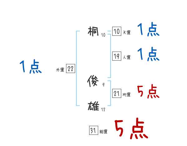 桐俊雄さんの画数の鑑定結果