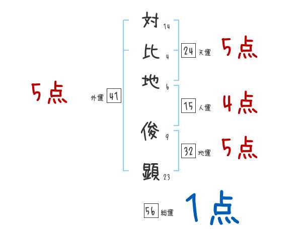 人運![]() | 対比地俊顕さんの人運は15画の4つ星!人徳があり出世する。順調に物事を進め円満な人生。 性格や才能などを表す2番目に重要な運勢です。人間関係や協調性、社会的な成功に影響します。主に20歳から50歳ぐらいまでの中年期の運勢を表します。 |