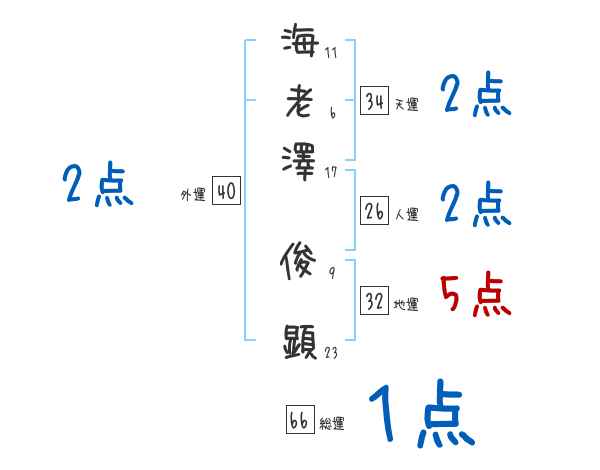 地運![]() | 海老澤俊顕さんの地運は32画の5つ星!柔軟性があり成功する。チャンスが多く金運が良い。 個性を表す基礎的な運勢です。性格形成や対人関係、行動力など家庭環境に影響されます。主に誕生してから20歳くらいまでの若年期の運勢を表します。 |