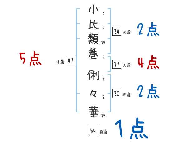 外運![]() | 小比類巻俐々華さんの外運は47画の5つ星!実力が開花し発展する円満な人生。財に恵まれる。 生活面を象徴する運勢です。外部から受ける影響力を表し、結婚運、家庭運や職場、環境への順応性を表します。 |