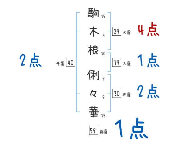 天運![]() | 駒木根俐々華さんの天運は29画の4つ星!完全主義で才能がある。厳格な心の持ち主。 家系が持つ宿命的な運勢を表します。祖先から受け継いだ苗字ですので自分の力が及びません。家柄を象徴します。 |