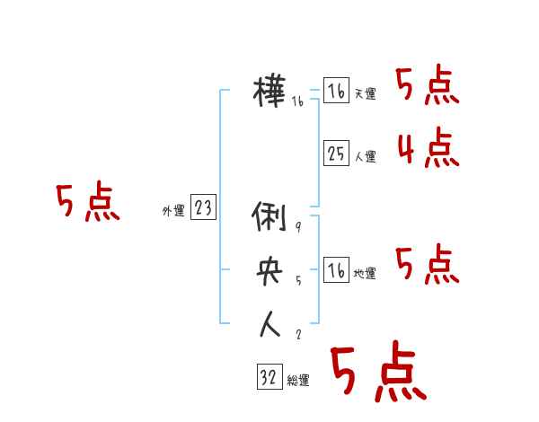 樺俐央人さんの画数の鑑定結果