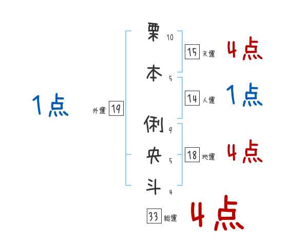 天運![]() | 栗本俐央斗さんの天運は15画の4つ星!人徳があり出世する。順調に物事を進め円満な人生。 家系が持つ宿命的な運勢を表します。祖先から受け継いだ苗字ですので自分の力が及びません。家柄を象徴します。 |