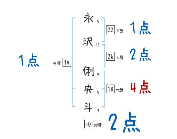 永沢俐央斗さんの画数の鑑定結果