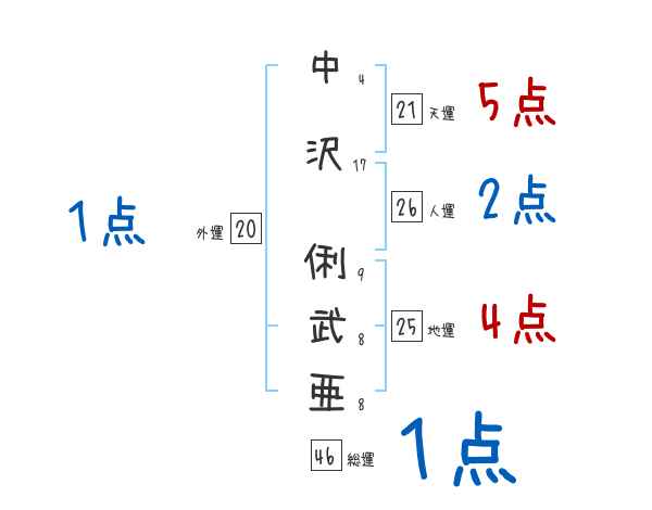 中沢俐武亜さんの画数の鑑定結果
