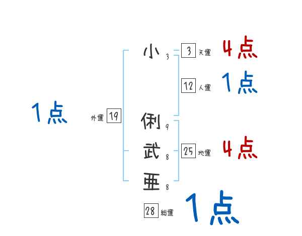 小俐武亜さんの画数の鑑定結果