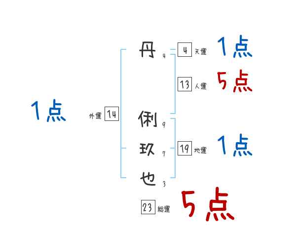天運![]() | 丹俐玖也さんの天運は4画の1つ星!感情が不安定で苦労するかも。周囲との協調を心掛けましょう。 家系が持つ宿命的な運勢を表します。祖先から受け継いだ苗字ですので自分の力が及びません。家柄を象徴します。 |
