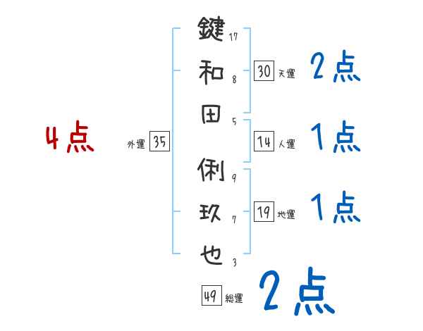 鍵和田俐玖也さんの画数の鑑定結果
