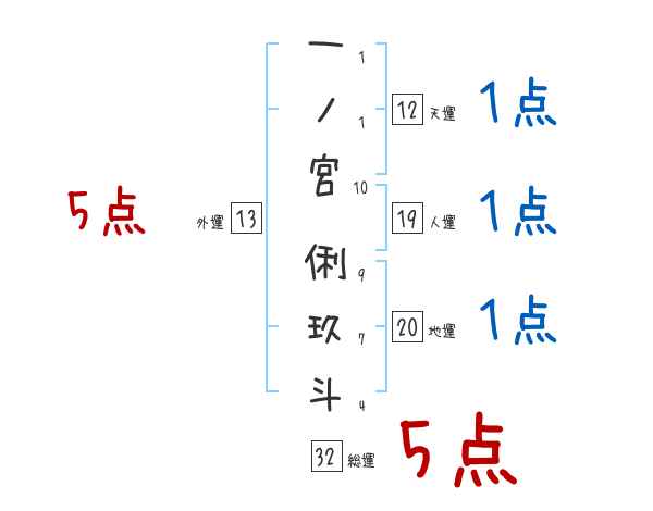 一ノ宮俐玖斗さんの画数の鑑定結果