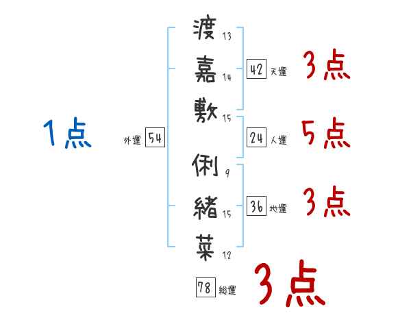 渡嘉敷俐緒菜さんの画数の鑑定結果