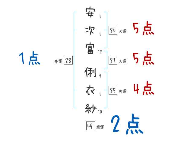 安次富俐衣紗さんの画数の鑑定結果