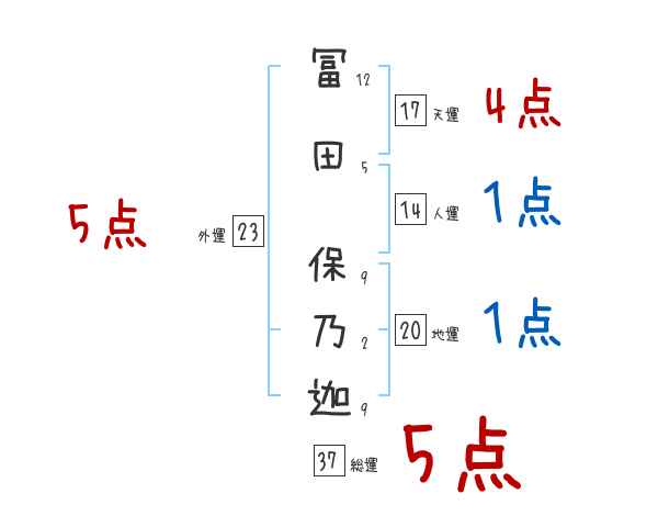 天運![]() | 冨田保乃迦さんの天運は17画の4つ星!積極的な行動力。地位を気づき財産を手に入れる。純粋な心と直感力。 家系が持つ宿命的な運勢を表します。祖先から受け継いだ苗字ですので自分の力が及びません。家柄を象徴します。 |