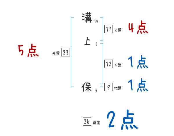 総運![]() | 溝上保さんの総運は26画の2つ星!波瀾万丈かも。信頼できる人を大事にしましょう。 あなたの人生を表す1番重要な運勢です。生涯を通じて影響する総合運となり、主に50歳以降の晩年期に影響を及ぼします。 |