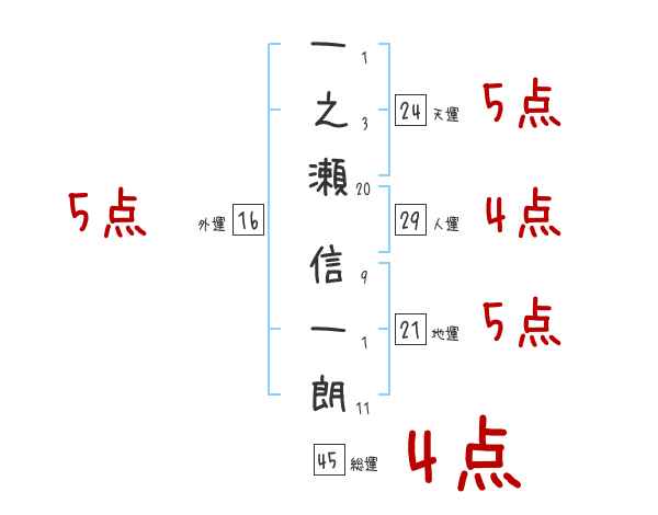 一之瀬信一朗さんの画数の鑑定結果