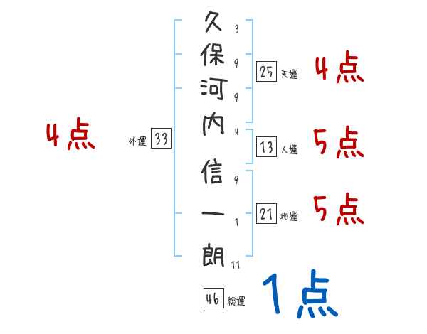 久保河内信一朗さんの画数の鑑定結果
