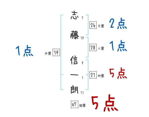 天運![]() | 志藤信一朗さんの天運は26画の2つ星!波瀾万丈かも。信頼できる人を大事にしましょう。 家系が持つ宿命的な運勢を表します。祖先から受け継いだ苗字ですので自分の力が及びません。家柄を象徴します。 |