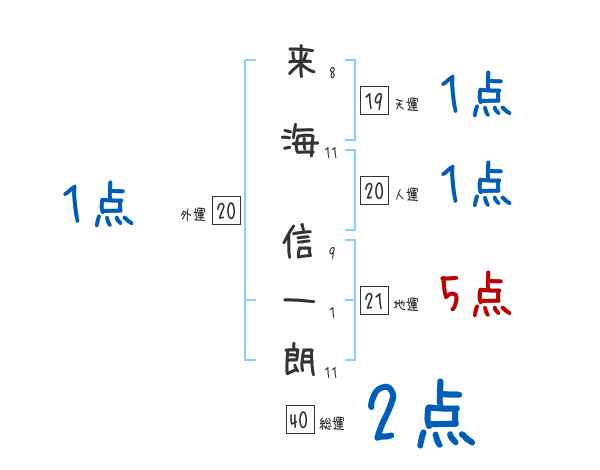 来海信一朗さんの画数の鑑定結果