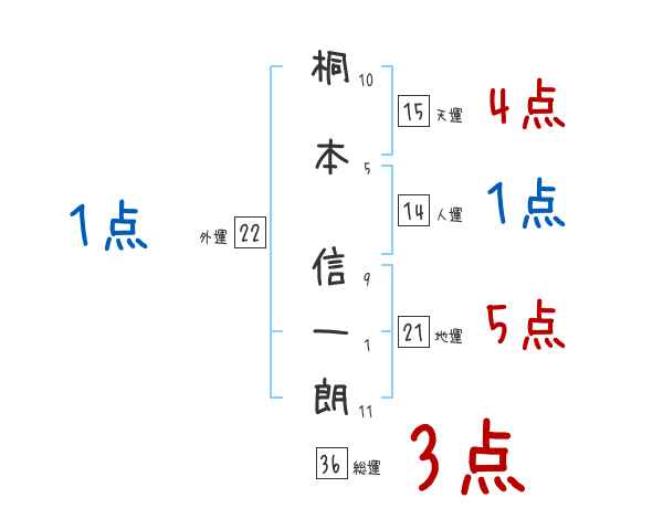 総運![]() | 桐本信一朗さんの総運は36画の3つ星!先見性が豊かです。多少神経質で苦労することも。 あなたの人生を表す1番重要な運勢です。生涯を通じて影響する総合運となり、主に50歳以降の晩年期に影響を及ぼします。 |