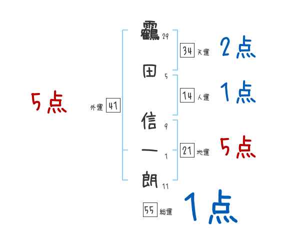靏田信一朗さんの画数の鑑定結果