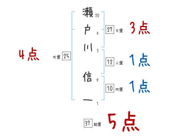 地運![]() | 瀬戸川信一さんの地運は10画の1つ星!不安を感じやすい傾向。ストレスを抱えないように注意しましょう。 個性を表す基礎的な運勢です。性格形成や対人関係、行動力など家庭環境に影響されます。主に誕生してから20歳くらいまでの若年期の運勢を表します。 |