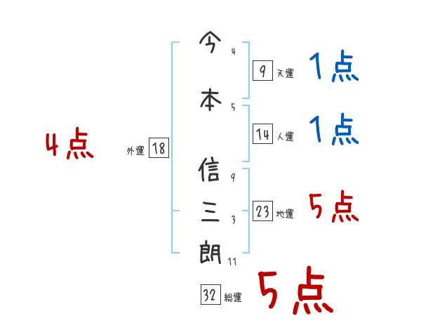 今本信三朗さんの画数の鑑定結果