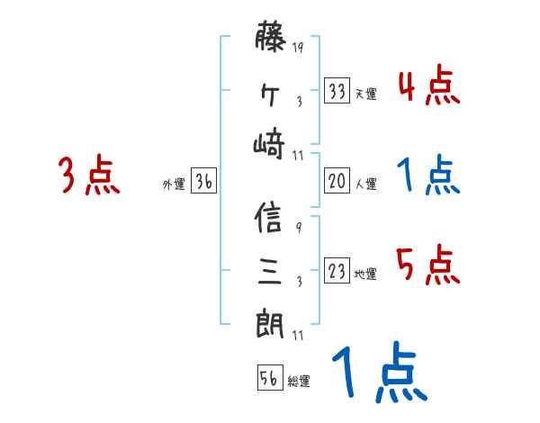 藤ヶ﨑信三朗さんの画数の鑑定結果