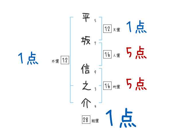 平坂信之介さんの画数の鑑定結果